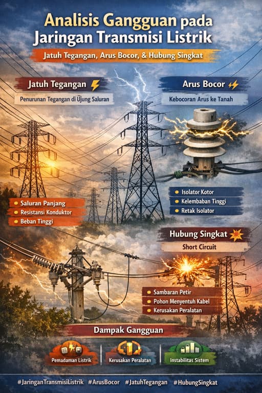 Tujuan penggunaan tegangan tinggi pada jaringan transmisi adalah untuk mengurangi rugi-rugi daya selama proses penyaluran energi listrik jarak jauh. Namun dalam praktiknya, jaringan transmisi tidak terlepas dari berbagai gangguan teknis yang dapat mempengaruhi keandalan sistem. Beberapa gangguan yang sering terjadi antara lain jatuh tegangan (voltage drop), arus bocor (leakage current), hubung singkat, serta gangguan akibat faktor lingkungan.