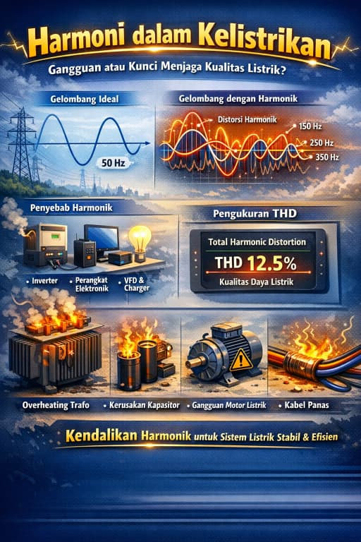 Harmoni dalam kelistrikan bukan sekadar gangguan pada gelombang listrik, tetapi juga menjadi indikator penting dalam menjaga kualitas daya listrik. Dengan memahami fenomena harmonik, teknisi dan insinyur listrik dapat merancang sistem kelistrikan yang lebih stabil, aman, dan efisien.