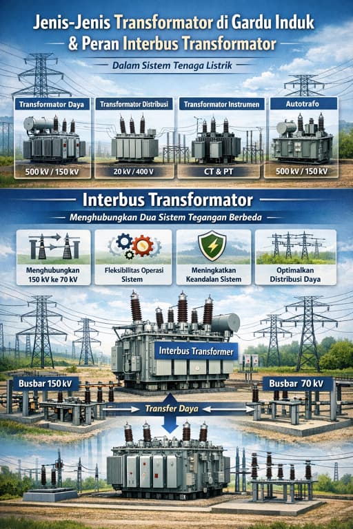 Di dalam gardu induk terdapat beberapa jenis transformator dengan fungsi yang berbeda-beda. Setiap transformator memiliki peran khusus dalam menjaga stabilitas, efisiensi, serta keandalan sistem tenaga listrik. Salah satu jenis transformator yang cukup penting namun sering kurang dikenal adalah interbus transformator yang berfungsi menghubungkan dua sistem bus dengan level tegangan yang berbeda.