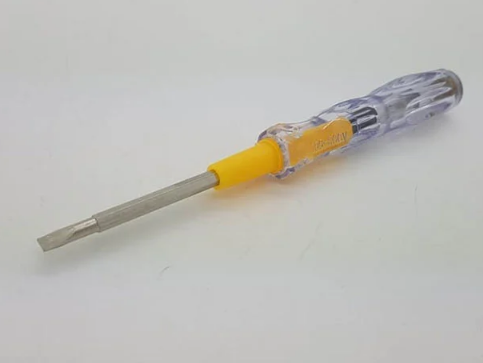 Obeng ini adalah obeng pipih, juga dikenal sebagai obeng pipih. Gunakan obeng untuk memeriksa jenisnya dan kendurkan sekrup bilah datar.