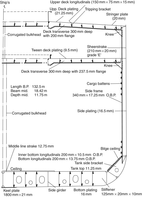 Pada tipe kapal general cargo, transverse framingnya digunakan untuk konstruksi sisi sebagai penahan tekanan hidrostatik, terdiri dari main dan hold frames dengan bracket atas dan bawah serta dilengkapi tween deck frames. Longitudinal framing systemnya banyak digunakan pada deck dan double bottom. Penguat longitudinal diperlukan karena pada tipe kapal ini, barang ditumpuk sehingga pusat gravitasi cenderung ke bawah.